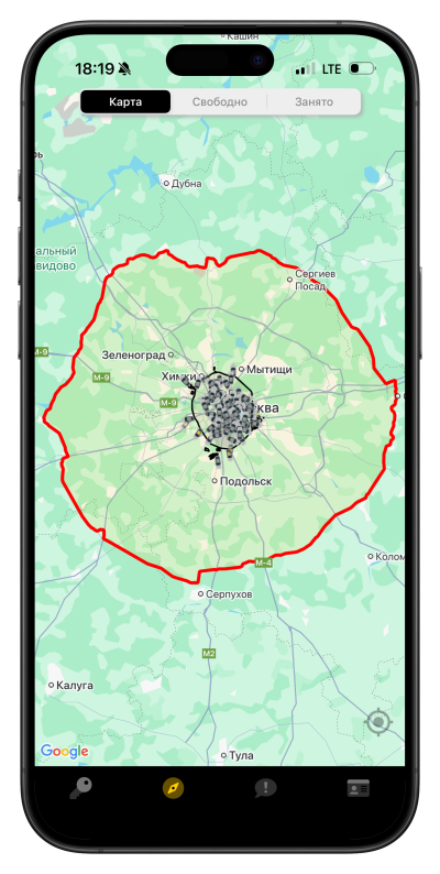 В Москве зона разрешенного использования - территория внутри автодороги А108 (Большое бетонное кольцо или «Большая бетонка»), приблизительно 100 км от МКАД. Ознакомиться с зоной можно в приложении, выбрав автомобиль на карте.