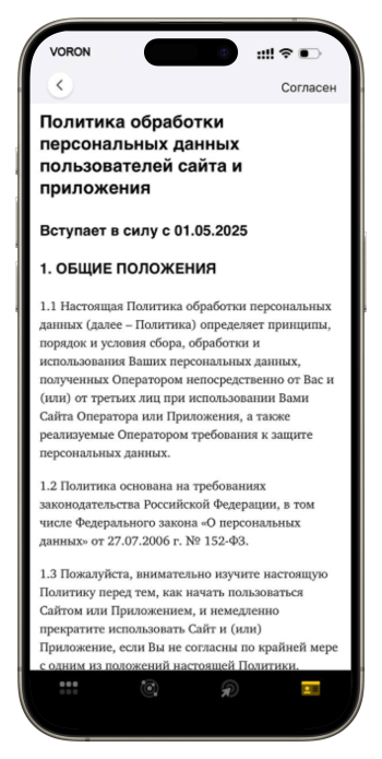 На следующем шаге для продолжения регистрации нужно согласится с обработкой персональных данных. С текстом можно ознакомиться → тут.