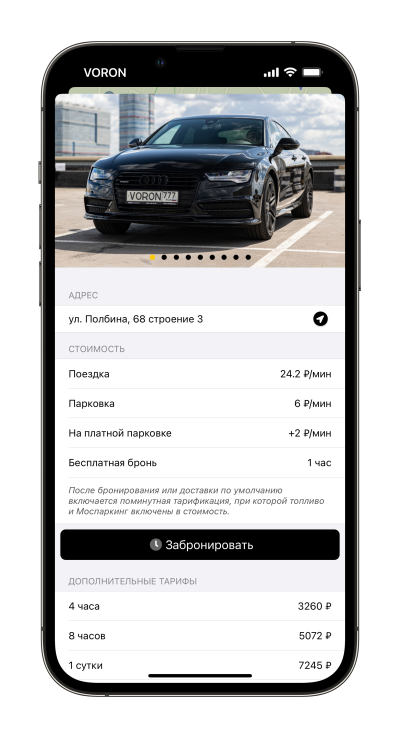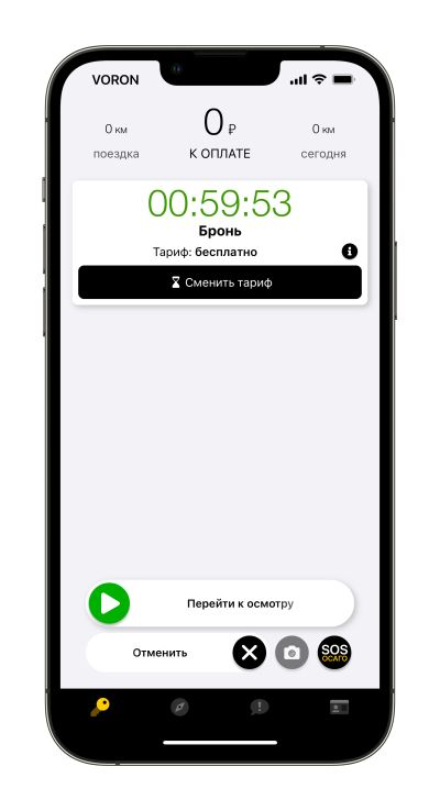 При бронировании происходит попытка списания 1 руб. с привязанной карты для проверки работоспособности оплаты. Если на данном этапе списание выдаст ошибку, то забронировать не получится. В таком случае требуется либо привязать другую карту и попробовать еще раз, либо обратится в поддержку.После того как вы забронировали автомобиль, экран Навигация, на котором была информация о свободных автомобилях меняется на экран Таймер, на котором видно какой у вас Автомобиль, в каком статусе (на данном примере статус Забронировано) и текущая стоимость поездки.