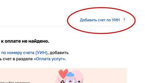 Нажимаем Добавить счет по УИН