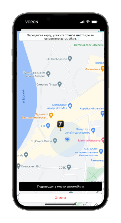 Если вы включите переключатель, но система не найдет поблизости платной зоны, то она выдаст ошибку.