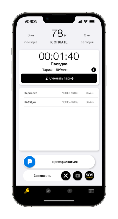 После успешного перевода в режим Парковка на экране Управления автомобилем будет указан статус «Парковка» или «Платная парковка».
