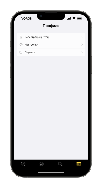 Для того, чтобы зарегистрироваться нужно перейти на экран Профиль и нажать кнопку Регистрация.
